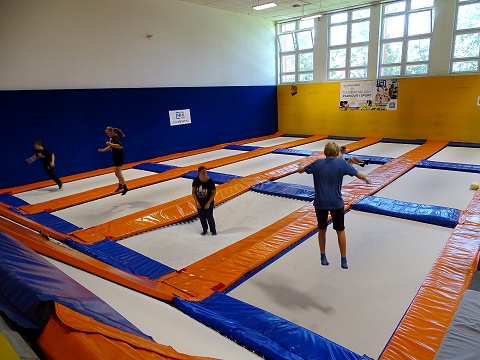 Na srazu se nás sešlo 17 náctiletých a 3 dospělí vedoucí. Za fantastického počasí jsme opustili Orlovou a dvěma spoji se dostali až do cíle cesty. Na místě nás pak čekaly plné dvě hodiny řádění, skákání, překřikování, zkrátka radostného dovádění na trampolínách.